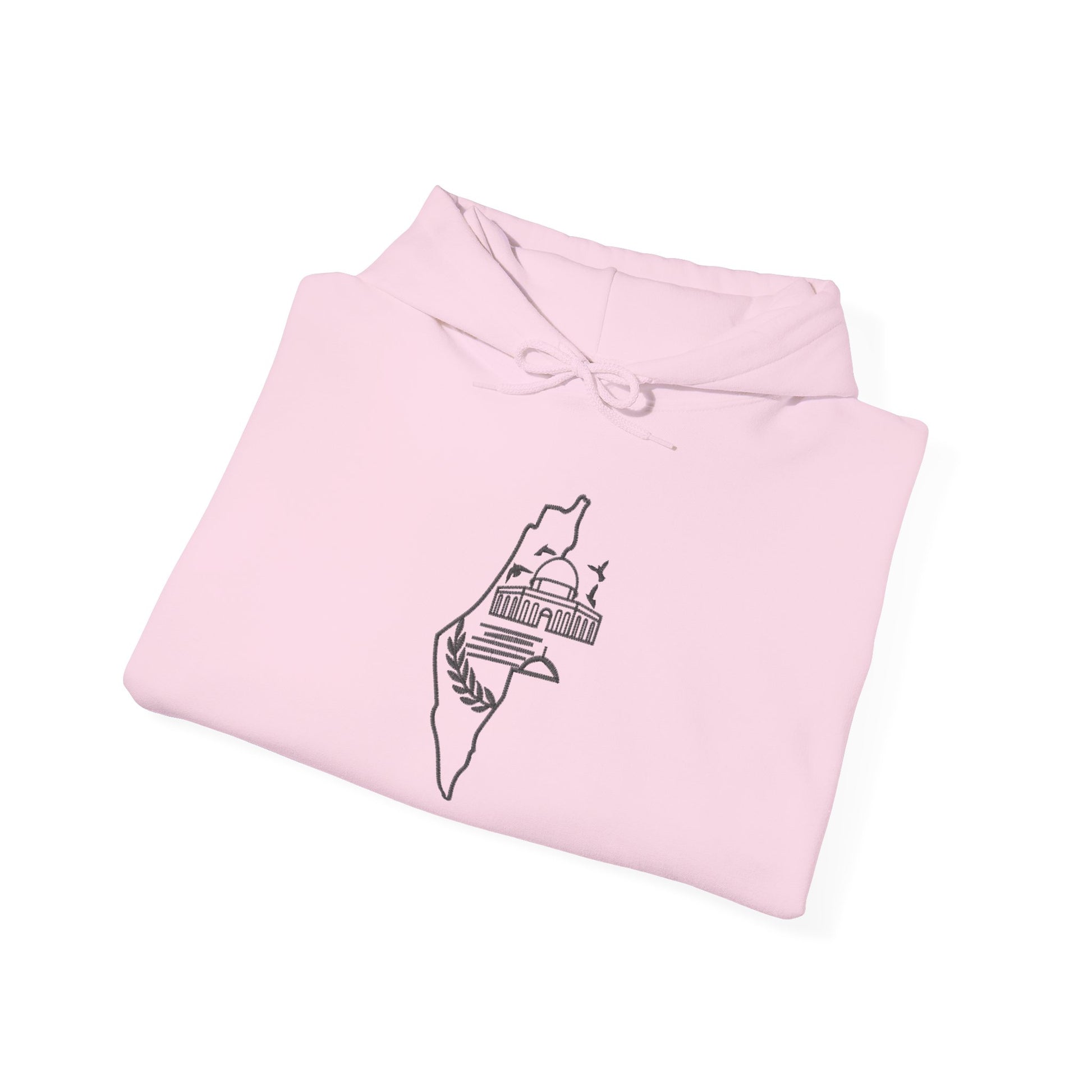 This Palestine Map Embroidered Hoodie exudes a cozy and stylish vibe, perfect for those who appreciate cultural motifs and embroidered designs. Ideal for individuals who value comfort and fashion. Relevant for holidays like Eid and occasions celebrating cultural heritage.